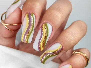 Dla fanek minimalizmu świetnie sprawdzi się french z delikatną złotą linią lub mikrodrobinkami, a dla odważniejszych – wersja z efektem cat eye na końcówkach.